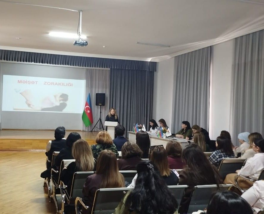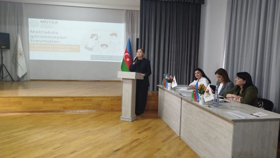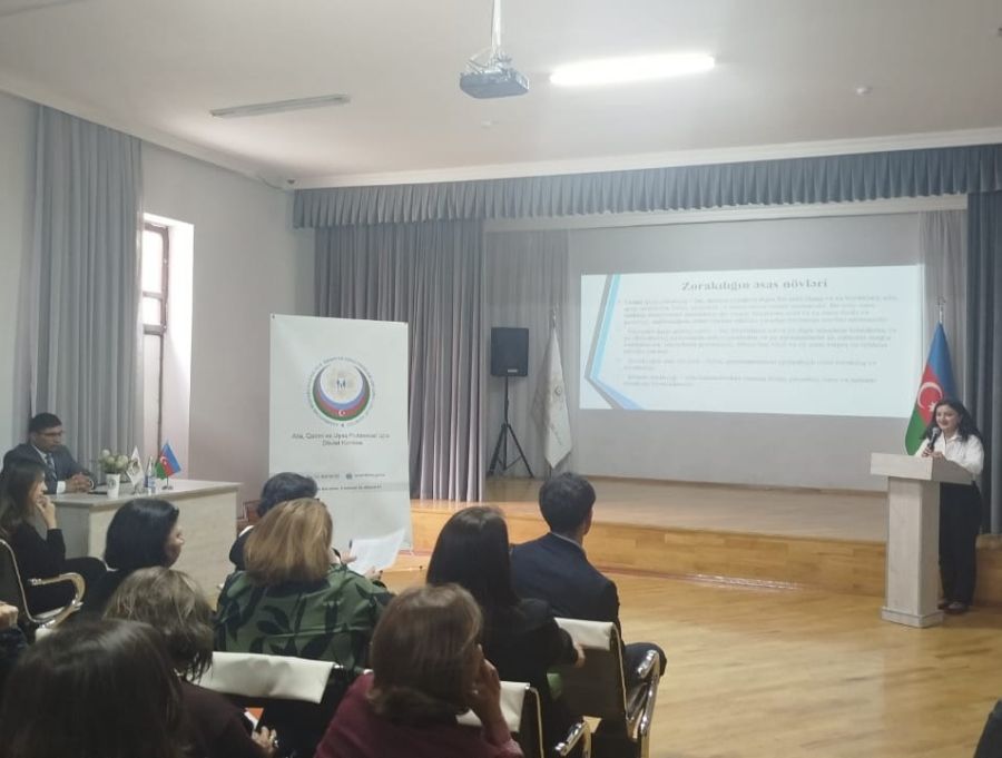 Qanunu və məişət zorakılığına məruz qalmış şəxslərin müdafiəsi” barədə, Elm və Təhsil Nazirliyinin, Bakı Şəhəri üzrə Təhsil İdarəsinin psixoloqları Nərmin Abbasova və Aysel Novruzova “Uşaqlara qarşı zorakılığın diaqnostikası və fəsadları” və “Məktəbdə görünməyən travmalar: məktəb psixoloqunun rolu və müdaxilə imkanları” ilə bağlı təqdimatlarla çıxış ediblər.