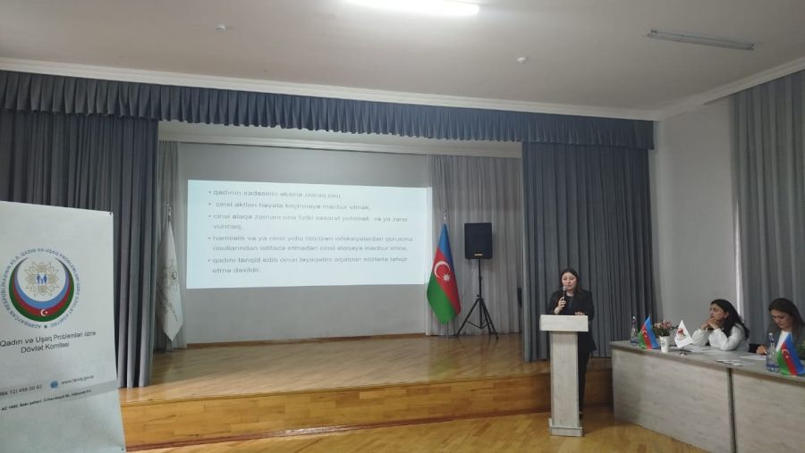 Seminarda Dövlət Komitəsinin əməkdaşı İradə Məmmədova “Məişət zorakılığının qarşısının alınması haqqında Azərbaycan Respublikasının