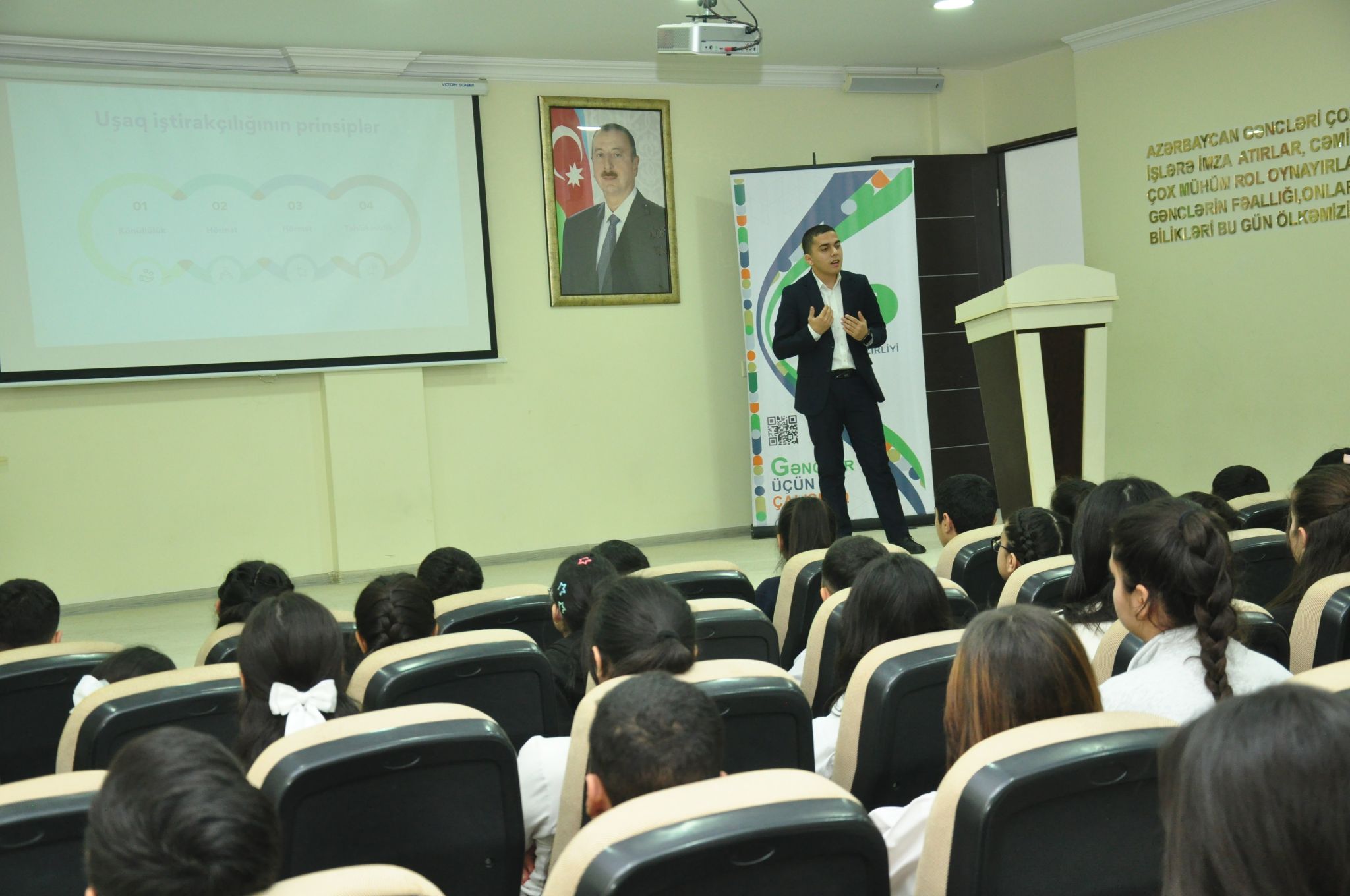 Daha sonra “Azərbaycan Uşaqlarının İnkişaf Platforması” İctimai Birliyinin sədr müavini Misir Məmmədov ictimai iştirakçılığın müxtəlif səviyyələri, təhsil, ailə və icma mühitdə tətbiqi barədə uşaqlara ətraflı məlumat verib.