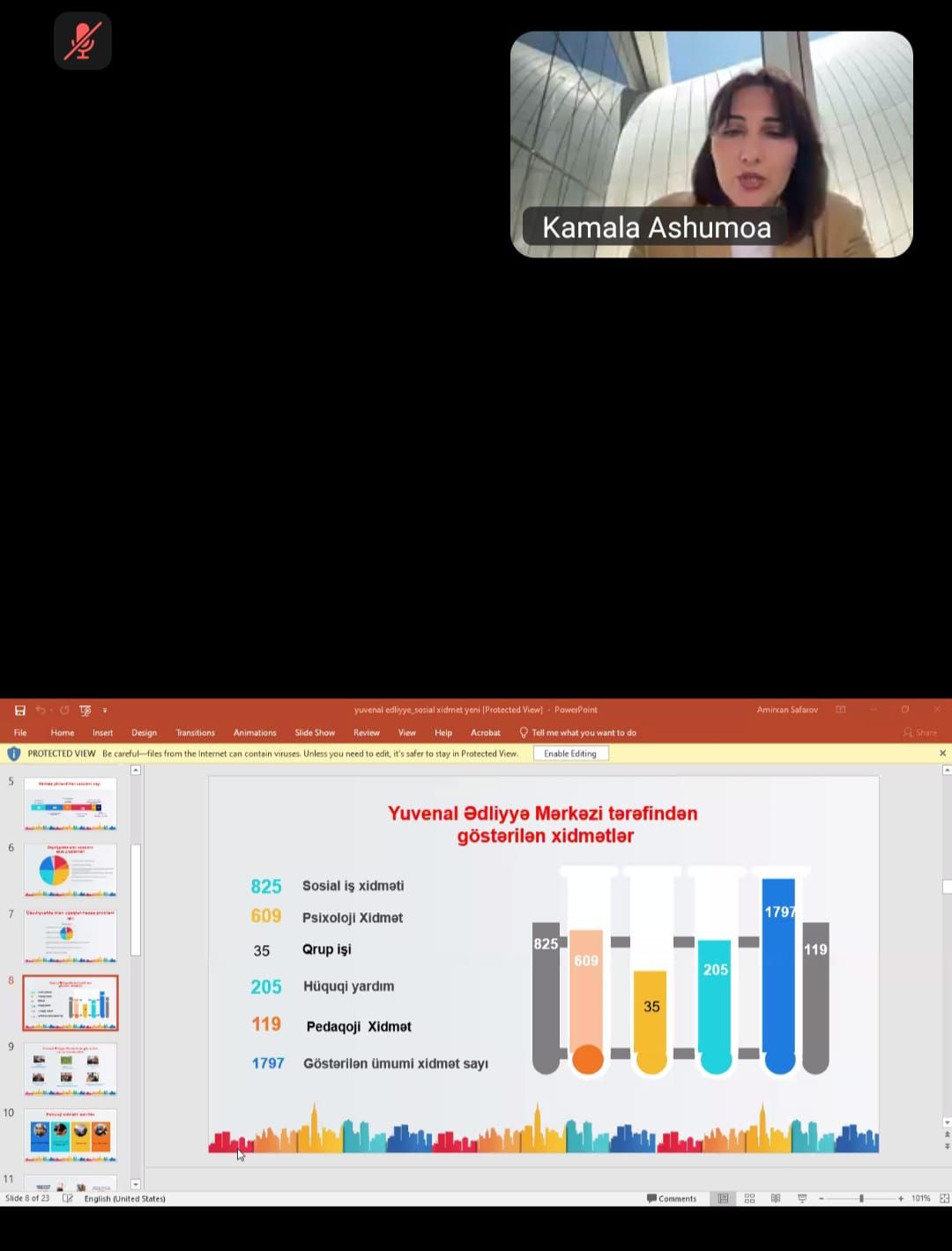 Görüşdə Dövlət Komitəsinin Ailə məsələləri şöbəsi müdirinin müavini Kamila Əliyeva və Türkiyənin Ailə və Sosial Xidmətlər Nazirliyinin Uzmanı Kemal Tolga Ercan açılış nitqi ilə çıxış ediblər. Sonra Daxili İşlər Nazirliyinin Baş ictimai Təhlükəsizlik İdarəsinin yetkinlik yaşına çatmayanlarla profilaktiki işin təşkili şöbəsinin rəis müavini İmran Əliyev “Qadınlara qarşı törədilən zorakılıq hallarının, ailə-məişət zəminində törədilən cinayətlərin qarşısının alınması sahəsində daxili işlər orqanlarının fəaliyyəti”, Komitənin Mərkəzlərlə iş sektorunun müdiri Pərviz Əliyev “Azərbaycanda ailədaxili münasibətlərə təsir göstərən amillər”, Bakı şəhər Baş Polis İdarəsi İctimai Təhlükəsizlik İdarəsinin polis polkovnik-leytenantı Kəmalə Ələkbərova “Hüquq pozuntusu törədən və törətməyə meylli uşaqlarla aparılan fərdi profilaktik işlər”, “Təmiz Dunya” Qadınlara Yardım İctmai Birliyinin sədri Mehriban Zeynalova “Qadın və uşaqlar üçün sığınma evi”nin fəaliyyəti, “Ümidli Gələcək” Sosial Təşəbbüslər İctimai Birliyinin sədri Kəmalə Aşumova “Yuvenal Ədliyyə Mərkəzinin fəaliyyəti”, Türkiyə Respublikasından Ailə və İctimai Xidmətlər Ümumi Müdirliyinin şöbə müdiri Ömer Çokgören “Ailənin möhkəmləndirilməsi üçün ailəyə yönəlmiş təhsil və məsləhət xidmətləri”, Uşaq Xidmətləri Ümumi Müdirliyi, Anka Uşaq Dəstək Proqramının ümumi koordinatoru Hakan Keçe “Hüquq pozuntusu törədən və törətməyə meyilli olan uşaqlarla fərdi sosial pedaqoji və tərbiyəvi işlərin aparılması”, Uşaq Xidmətləri Ümumi Müdirliyinin ekspert köməkçisi Büşra Yalçın “Anka psixososial uşaq dəstək proqramı”, Uşaq Xidmətləri Baş İdarəsində Ailə və Sosial Xidmətlər mütəxəssisinin köməkçisi Yasin Alçep “Ailələrə Sosial xidmətlər” mövzuları ilə bağlı ətraflı məlumat veriblər.