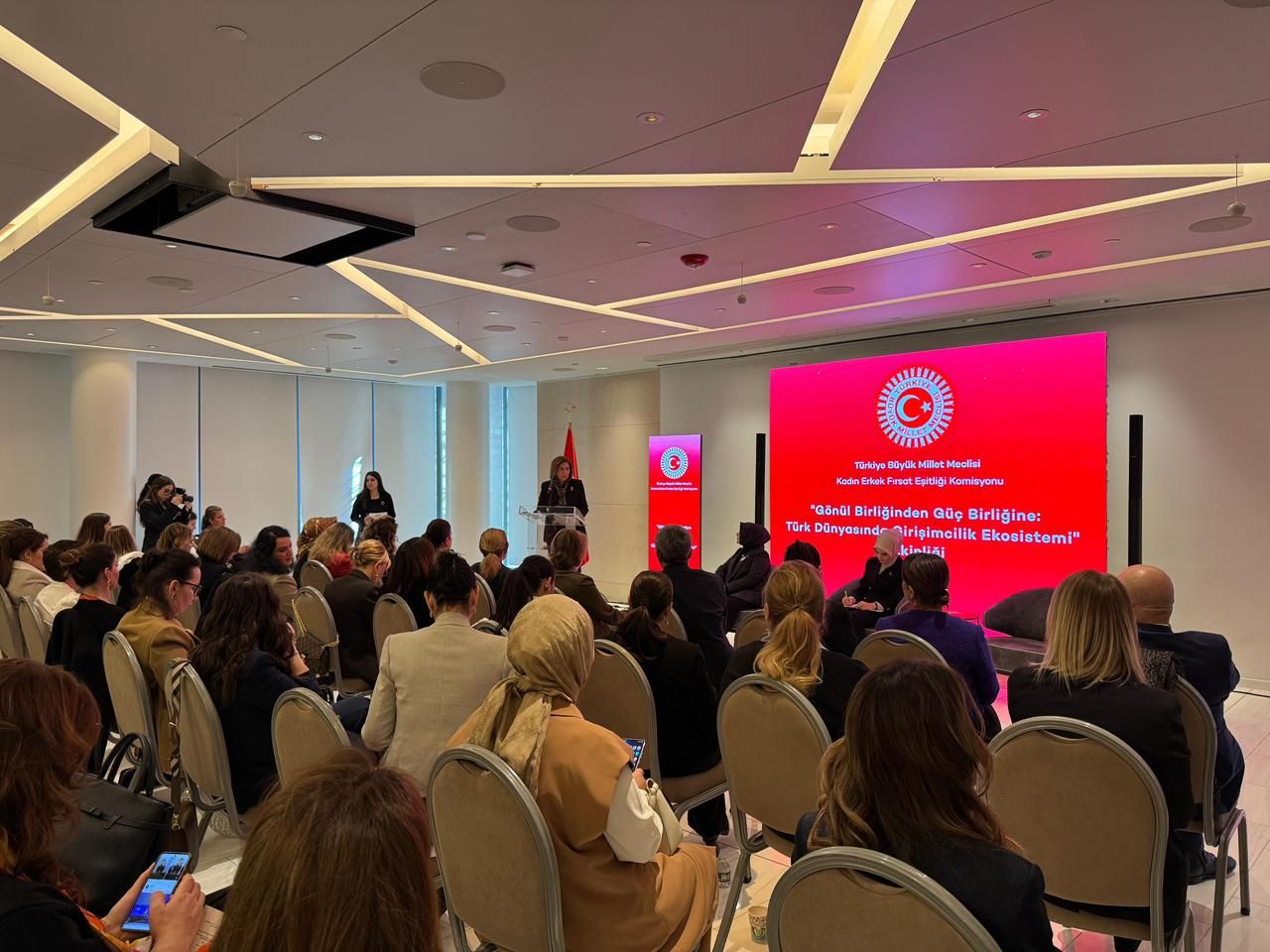 Türkiyə Böyük Millət Məclisinin Qadın-Kişi Fürsət Bərabərliyi Komissiyasının təşkilatçılığı ilə ABŞ-ın Türkevi binasında “Könül birliyindən güc birliyinə: Türk dünyası arasında sahibkarlıq ekosistemi” mövzusunda Türkiyə, Azərbaycan və Şimali Kipr qadın sahibkarlarının da iştirakı ilə tədbir baş tutub.