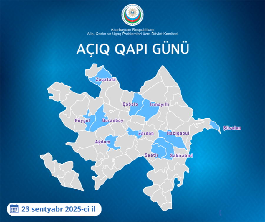 Ailə, Qadın və Uşaq Problemləri üzrə Dövlət Komitəsinin tabeliyində olan Ağdam Uşaq və Ailələrə Dəstək Mərkəzinin fəaliyyət istiqamətlərinə uyğun olaraq psixoloq, sosial işçi, sosial pedaqoq və hüquqşünasın iştirakı ilə Ağdam rayonunun Sarıcalı və Kəngərli kəndlərində “Açıq qapı” günü keçiriləcək. “Açıq qapı” günü 23 sentyabr 2025-ci il tarixində, saat 11:00-16:00-da Azərbaycan Respublikasının işğaldan azad edilmiş ərazilərinə Böyük Qayıdışa dair I Dövlət Proqramı”nın Tədbirlər Planının 3.1.9-cu bəndinin icrasına əsasən ailə, qadın və uşaq məsələləri sahəsində problemlərin həlli, habelə hədəf qruplarının müvafiq xidmətlərlə əhatəsinin gücləndirilməsi məqsədilə təşkil olunacaq. Qeyd edək ki, “Açıq qapı” günü, həmçinin 23 sentyabr 2025-ci il tarixində saat 10:00-dan 13:00-dək Dövlət Komitəsinin tabeliyində olan digər Uşaq və Ailələrə Dəstək Mərkəzləri tərəfindən də keçiriləcək. Ünvan və telefonlar